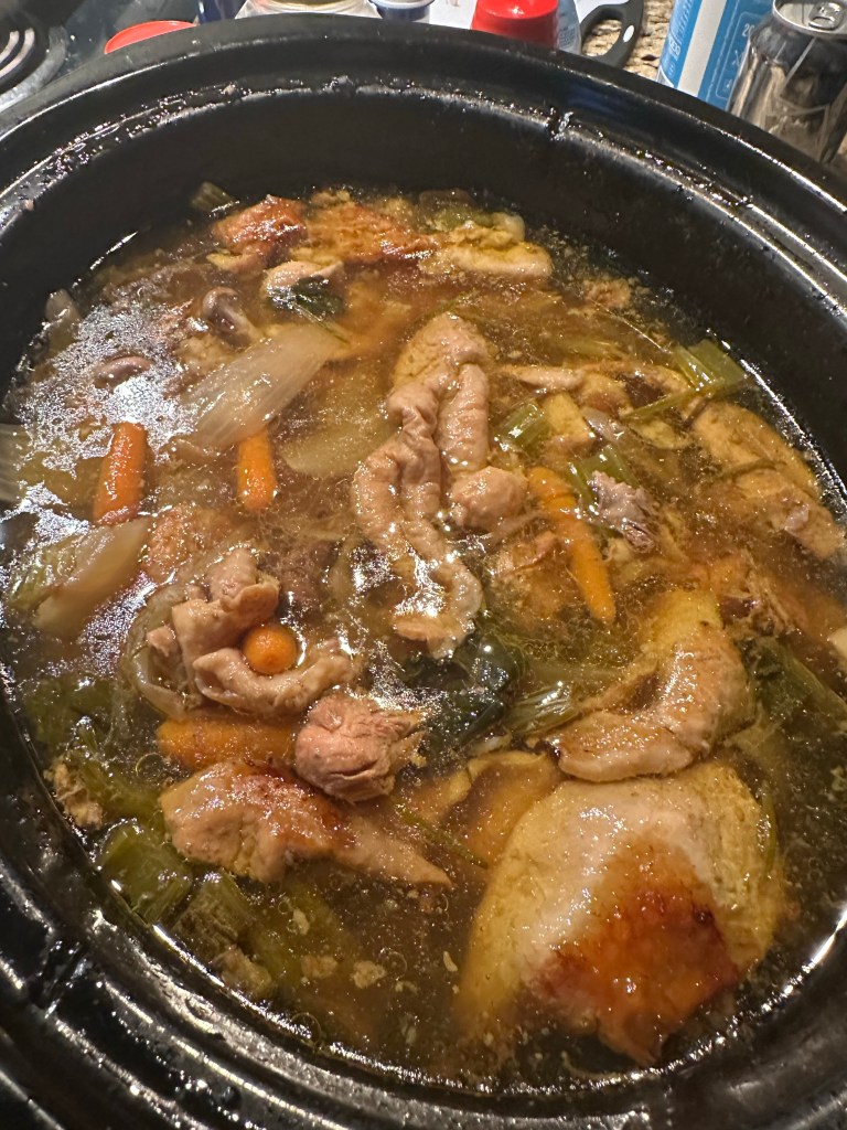 I’m trying though. Knowing I can only have broth and protein drinks for 10 days, I made my own chicken broth with the crockpot.